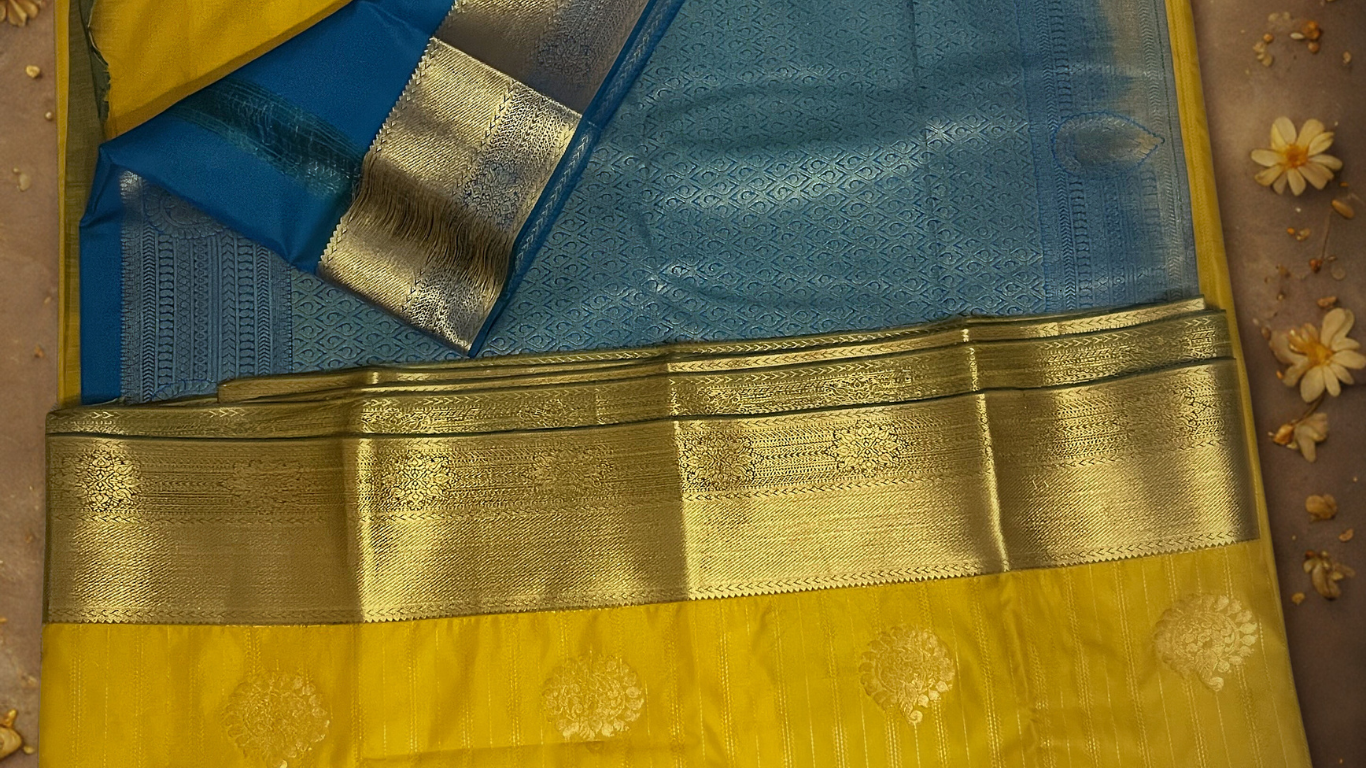 Explore our curated collection of handloom silk and cotton sarees, crafted by skilled artisans from South India’s finest weaving traditions.